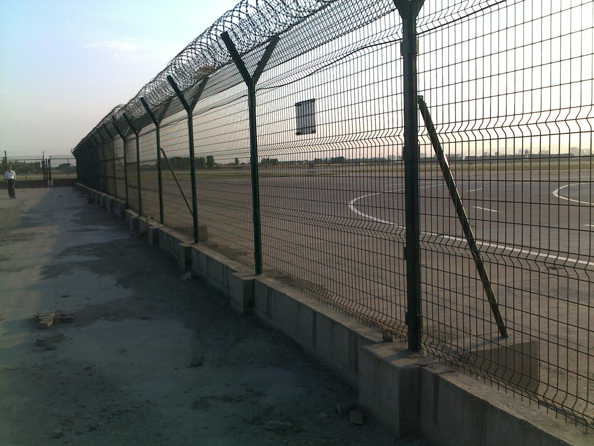 機場護欄網(wǎng)又稱作“Y型安全防御護網(wǎng)”,是由V型支架立柱加強型焊接片網(wǎng),安全防盜連接件和熱鍍鋅刀片刺網(wǎng)組成強度和安全防御性級別很高。被廣泛應(yīng)用在機場,軍事基地等高安全場所。
