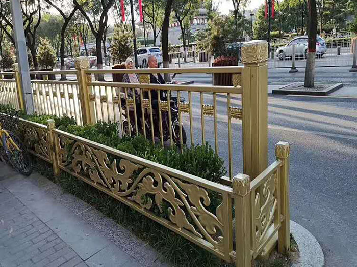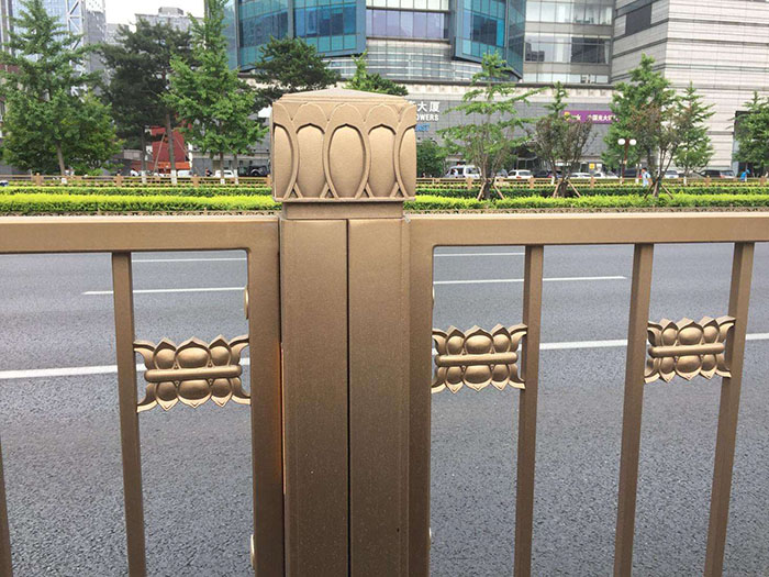 黃金蓮花護(hù)欄又叫金色道路護(hù)欄,其顏色大氣,款式新穎,凸顯中國傳統(tǒng)文化特色,在兼顧美觀的同時用料也非??季?,耐用、防腐、抗撞擊能力突出。